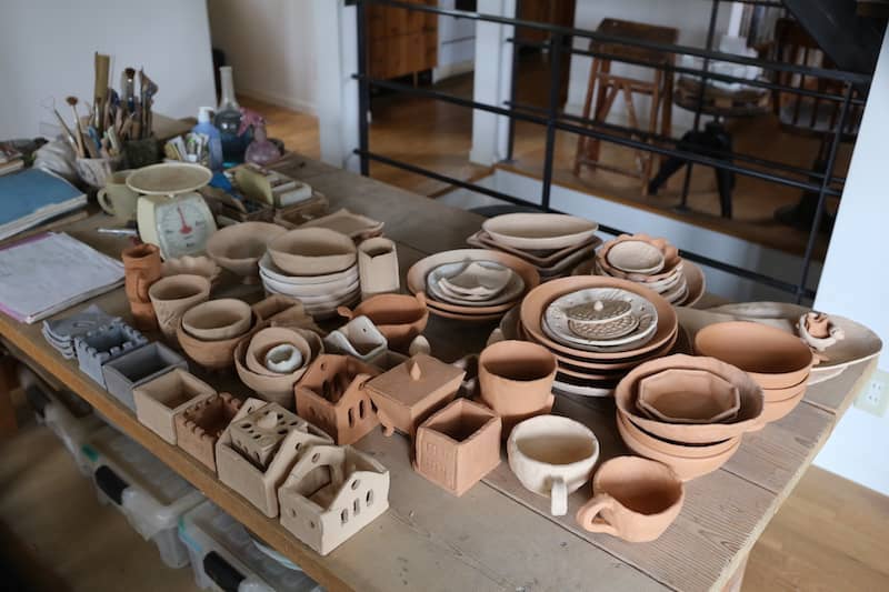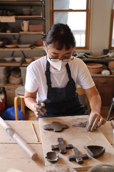 手びねりで、ピアスと壁掛けのインテリアを作りました。